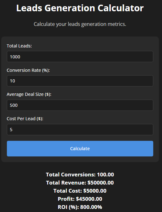 🔹Lead Generation ROI Calculator: Estimate the ROI of your lead generation campaigns.