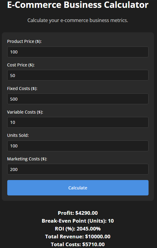 🔹 E-commerce Profit Calculator – See your real profit after fees and costs.