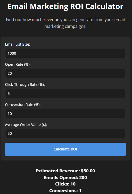Running an online business involves a lot of numbers—ad costs, conversions, email open rates, and profit margins. But let’s be honest, crunching numbers manually can be a headache. That’s why I’ve created these free calculators to make your life easier! Whether you’re into e-commerce, lead generation, or email marketing, these tools will help you make data-driven decisions in just a few clicks.